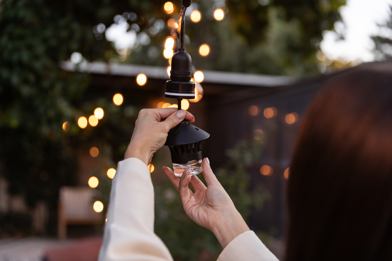 Let's face it, it can be hard to hang string lights when no trees or other structures are available in your desired space. BiteFighter® LED String Light planters are the perfect solution if you are looking for an easy way to style your outdoor space. Create your dream patio and help repel mosquitoes at the same time. With ambiance and vibrancy all in one, it's time for the perfect place to entertain! Hanging your mosquito repellent lights is easy, just follow the steps below! Materials Planters: Need to be large enough to hold concrete and the wooden posts that will be inside Wooden Posts: For this project, we used 4x4x8 white wood posts Concrete Mix: We used two 50lb bags of fast setting concrete mix String Lights: BiteFighter® LED Mosquito Repellent String Lights Hooks: Small sized hook to attach the lights to posts Drill: Will use to create drainage holes in the planters and attach the lights to the house Potting Soil: Select the appropriate soil for the types of flowers/plants you will be using Flowers/Plants: Get creative! Whatever greenery or flowers you'd like to highlight in your space Wood Stain: Optional dependent on the wood type you're using and the look you're going for Level: Optional, but ideal to make sure your posts are standing straight up Step 1: Sand and/or Stain 4x4 Wooden Posts (Optional) Depending on the type of wood you decide to purchase, sanding and staining your posts might be a great option. You can choose to do this at any time! Pressure treated wood is a popular choice. If you choose to go with a different type of wood, these steps may not apply to you. Every patio space is different, so it is all up to you! Step 2: Mix Concrete & Water Next, choose a vessel to mix your concrete. We recommend something easy to rinse when you are through like a wheelbarrow. Combine water and concrete together into your vessel of choice. Next, use a shovel to mix until you reach the consistency you desire. You may notice your concrete looks a little bit rocky, this is completely normal. Step 3: Add Wooden Posts to Planters & Fill After your concrete is mixed, it's time to add the wooden posts that will support your patio string lights. First, simply place your wooden post into the flower planter. Next, pour your concrete mixture into the planter until the surrounding area is a little less than halfway full. Make sure the mixture is holding the post snuggly. We used one 50lb bag of concrete per planter with an eyeballed measure of water. Step 4: Level the 4x4s Once poured, your concrete will begin to set quickly. During this time check that the posts are flat and even. For the most accurate read, we recommend using a level. We used one that wraps around the post to make sure that it is balanced at all angles. If needed, make any adjustments to the placement of your wooden posts at this time. Step 5: Drill Drainage Holes When planting flowers, it is necessary that they have the perfect amount of drainage to stay alive and healthy. Drill a few small holes just above the concrete on your planter to help with drainage. Step 6: Add Soil & Plants/Flowers Now that the structure is in place, it's time to move onto adding your greenery. First add potting soil on top of the concrete. Make sure there is an even layer, and it is not too tightly packed. After placing the soil, add plants/flowers of your choice. This is where you can get as creative as you would like. Choose colors that match your patio space or something that makes your patio pop! The options are endless. Step 7: Unbox TIKI® Brand BiteFighter® LED Mosquito Repellent String Lights With your posts secured and your flowers planted, you're ready to hang the string lights. No one likes being bugged when spending an evening on the patio. So, while any lights will work, we recommend TIKI® Brand BiteFighter® String Lights. These outdoor string lights are one-of-a-kind that offer a silent and invisible zone of 330 square feet of protection. With just the flip of a switch, mosquito repellency is established in 15 minutes.* In each box of BiteFighter® Lights you will find: 1 set of string lights (36 feet)3 integrated repellent diffusers12 LED shatterproof bulbs (with 2 spares)3 repellent pods1 replacement fuse Step 8: Apply Hooks & Hang Lights To secure your string lights, drill one hook into each of your posts. To hang our lights, we attached them to the house and added a hook on each post to help support the lights. Once complete, hang your lights from post to post. Step 9: Enjoy! Grab a chair, your favorite beverage and your favorite people. Turn on your lights and use the on/off switch to say goodbye to mosquitoes and hello to ambiance! *Based on studies that demonstrated a reduction in mosquitoes compared to untreated controls. Use as directed. Efficacy may be affected by weather conditions, configuration and distance from replaceable repellent pods, and individual physical factors. Season assumed as 200 hours or 90 days at an average use of 2.4 hours per day.