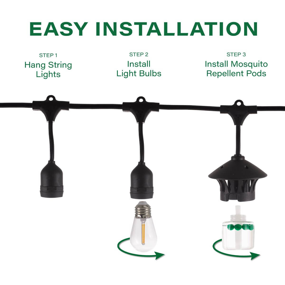 Reinforcements at the ready. Each box of BiteFighter® LED String Lights Mosquito Repellent Pods contains three replacement pods with proven mosquito repellency.* To establish a mosquito-repellent protection area, power on pod diffusers for 15 minutes prior to outdoor activity. Each repellent pod creates a protection zone of 110 square feet. Only for use with BiteFighter® LED String Lights. When used properly, pods will provide mosquito repellency for up to 200 hours.*