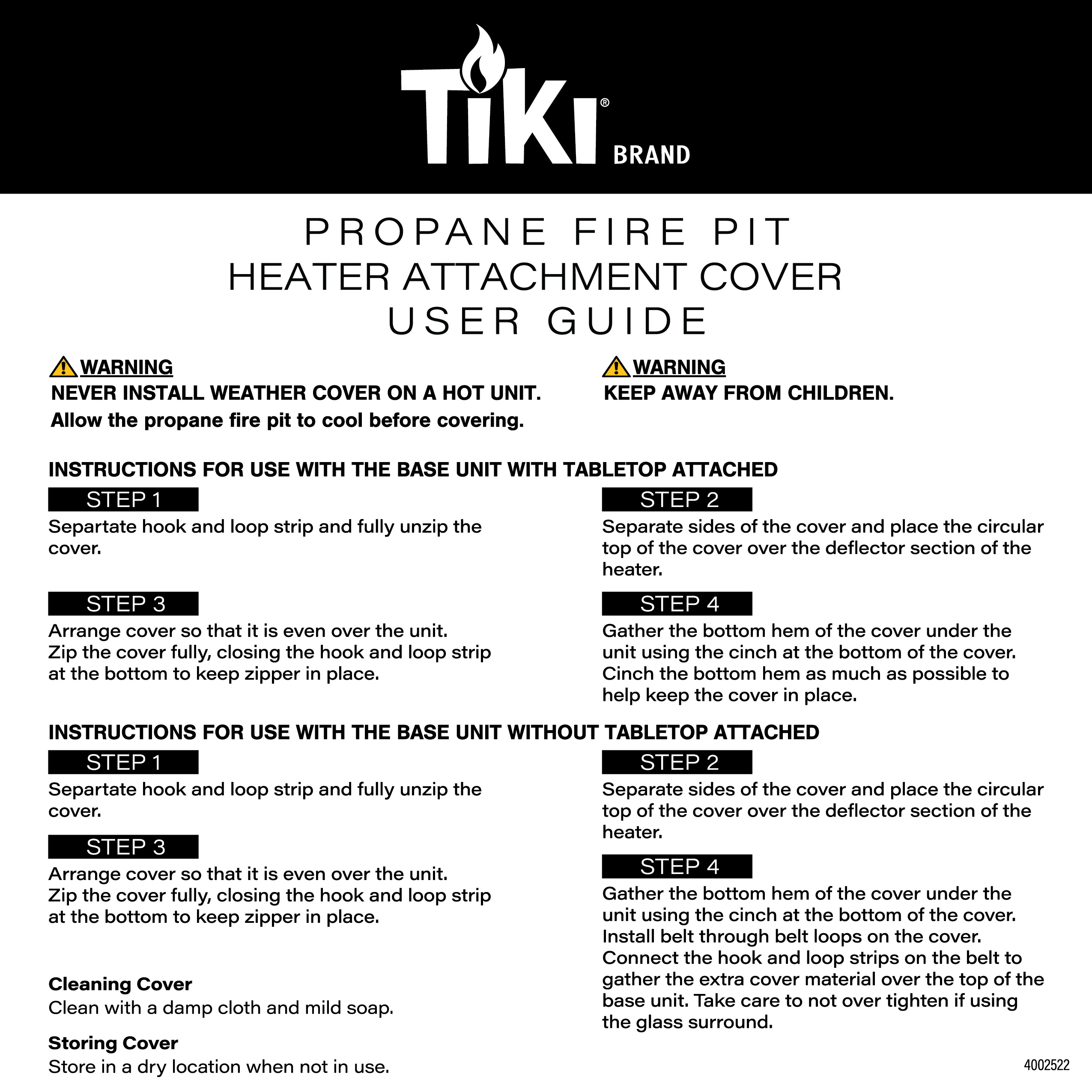- Protect your TIKI® Brand Propane Fire Pit Base and Heater Attachment (sold separately) from outdoor elements