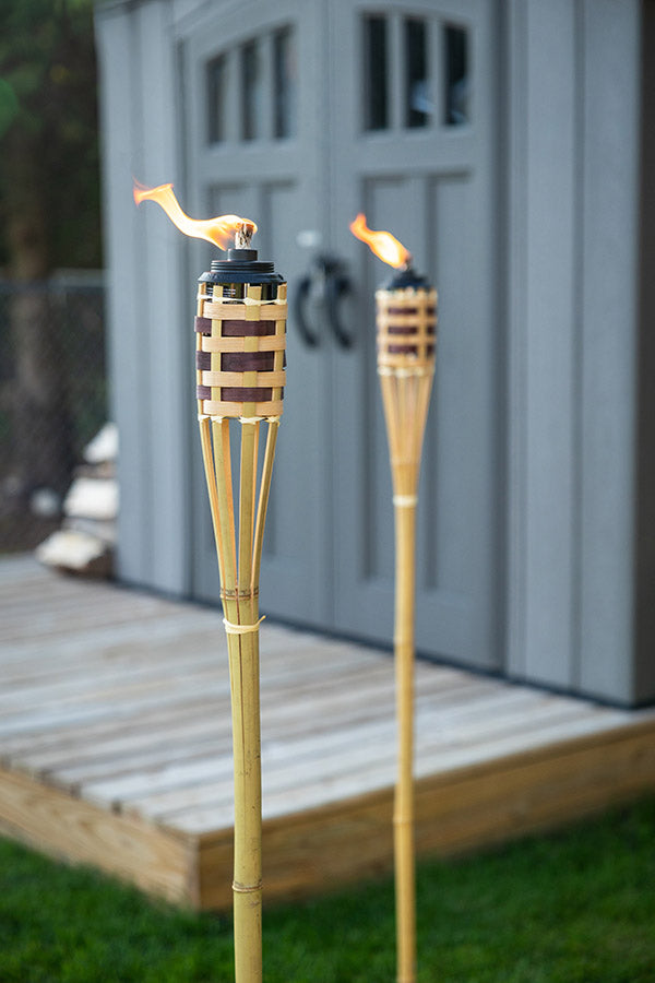 If you spend as much time living and entertaining outdoors as indoors, then adding the ambiance of natural flame lighting with the Island King® Large Flame Torch to your outdoor living room will make your gatherings even more enjoyable. The Island King® Torch features a unique design that results in a flame that’s five times larger than traditional torches. The uniquely designed torch bowl keeps the flame burning big and bright, even in the wind. It has a weather-resistant gunmetal finish and comes with an easy-to-assemble four-piece pole. With its Twist & Pour™ technology, you simply twist the top to expose the fill hole, pour in your torch fuel and then twist to close, providing quicker refills and less mess. It also comes with an attached magnetic metal snuffer to help extinguish flames and cover the wick when not in use. Each torch stands 66 inches tall. For proven mosquito repellency*, use with TIKI® Brand BiteFighter® Torch Fuel, and enjoy up to 5 hours of burn time with each 16-ounce fill. TIKI® Brand BiteFighter® Torch Fuel sold separately. *Based on studies using CO2-emitting mosquito traps which demonstrated over 50% reduction in captured mosquitoes compared to untreated controls. Use as directed. Efficacy may be affected by weather conditions, torch placement, and individual physical factors.